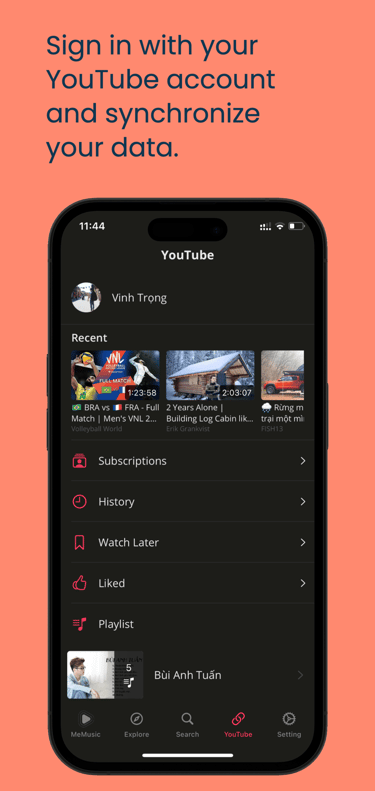 Đồng bộ danh sách phát và dữ liệu từ tài khoản YouTube của bạn một cách dễ dàng.